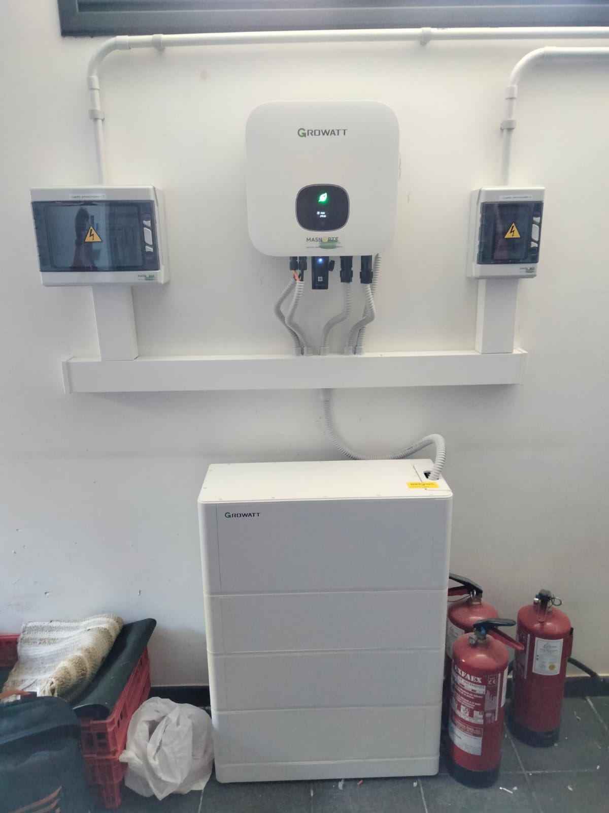 🔋Montaje de 11 módulos Exiom EX460-480TC(B)-120(HC)(182)BF, de 480W, gestionados por un inversor híbrido Growatt de 4,2kW, y una batería, también Growatt, de 7,6kWh de almacenamiento.
