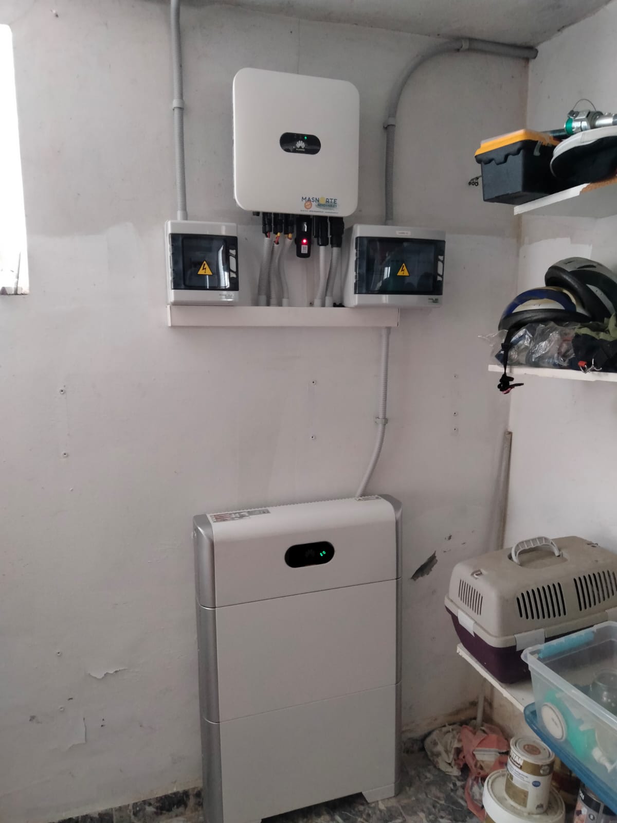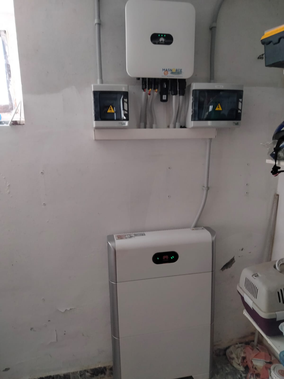 🔋Ampliación con 6 módulos Exiom EX390-415M(B)-108(HC)(182) de 410W a la instalación existente, gestionados por un inversor híbrido Huawei de 5 kW y una batería, también Huawei, que completan 10 kWh de almacenamiento.